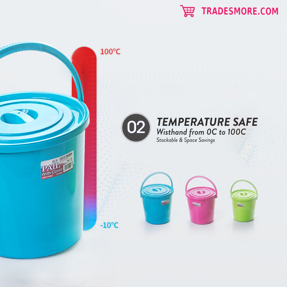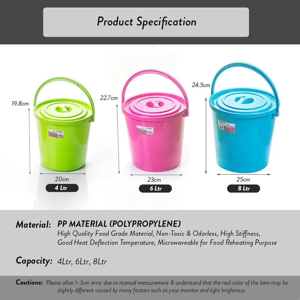 Elianware 4 ltr/ 6ltr / 8 ltr Water Pail Tong Air Baldi with Cover