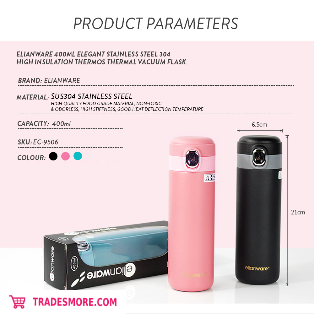 Elianware 400ml Elegant Stainless Steel 304 High Insulation Thermos Thermal Vacuum Flask