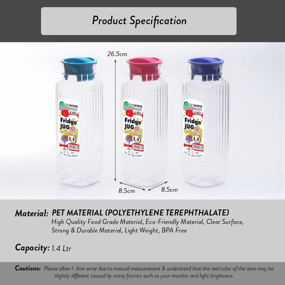 Elianware BPA Free Glass-Like Transparent Clear Water Jug with Twistable Cover (1.4Ltr)