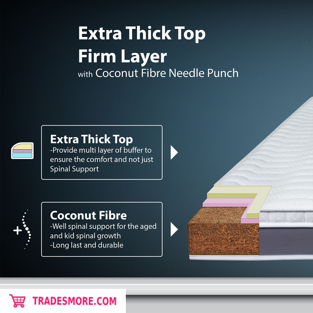 Fibre Star Coconut Fibre Mattress are made of fibres which have a natural springy property, which provides the user with additional support to the entire body while sleeping. This additional support offered by coconut fibre mattress can be highly beneficial for people with back problems, backaches etc. as it provides a perfect sleeping position and allows proper alignment of the spine.
