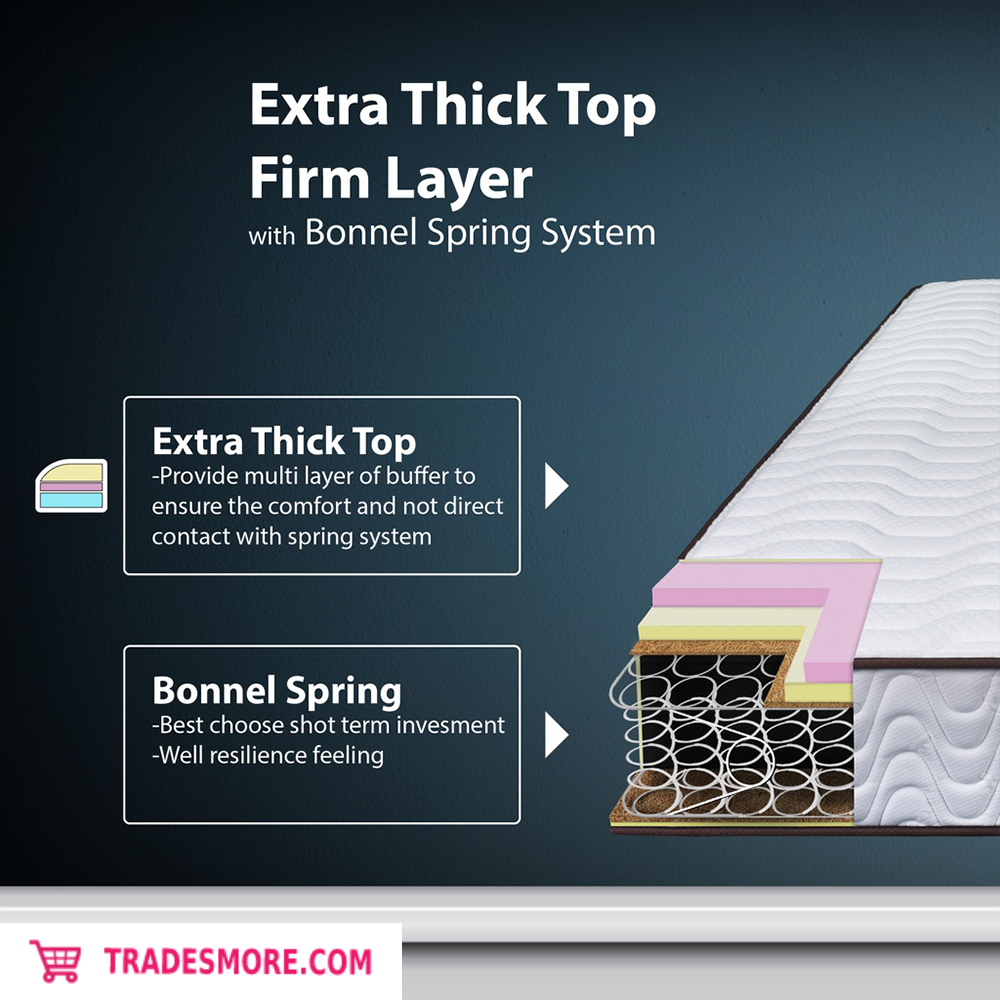 Fibre Star Bonnell Spring Mattress are made with spring materials providing a solid spring structure. They are designed specially for people who prefer firm and solid mattresses. Bonnell Spring Mattress are durable and provide you better longevity than other mattress. Bonnell Spring Mattress provide relaxation and support as well as ample area for easy movement. Bonnell spring mattresses are a great choice if you’re looking for an affordable mattress.