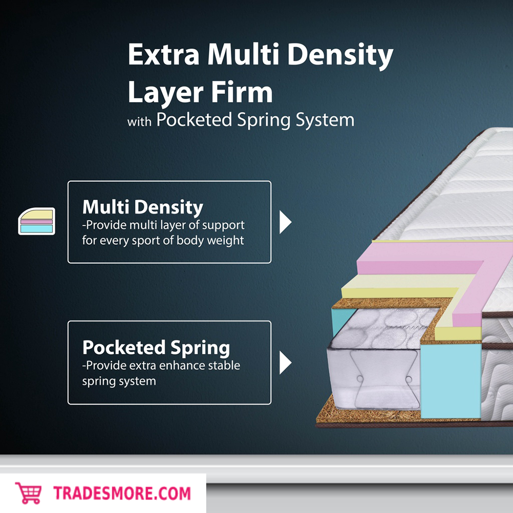 Fibre Star Pocketed Spring Mattress are made with spring materials providing a solid spring structure. They are designed specially for people who prefer firm and solid mattresses. Pocketed Spring Mattress are durable and provide you better longevity than other mattress. Pocketed Spring Mattress provide relaxation and support as well as ample area for easy movement. Pocketed Spring Mattresses are a great choice if you’re looking for an affordable mattress.